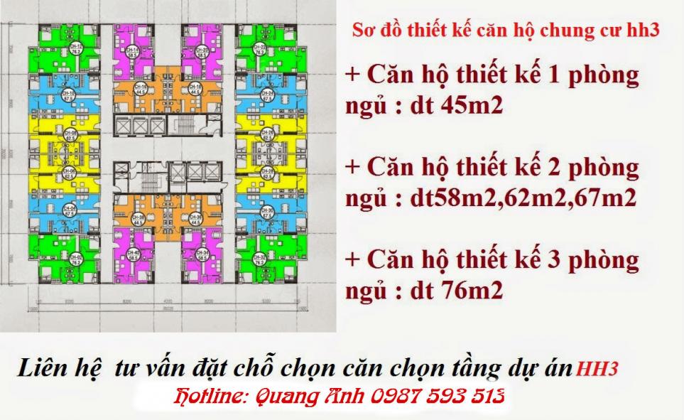+ Sơ đồ thiết kế chung cư hh3 linh đàm : dự án chung cư hh3 Linh Đàm được thiết với đủ loại diện tích từ 45m2 đến 76m2, từ loại 1 phòng ngủ đến 3 phòng ngủ phù hợp với tất cả nhu cầu của quý khách.