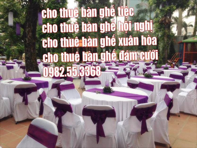 Cho thuê bàn ghế có khăn phủ, nơ, cho thuê bàn ghế phục vụ khai mạc hội chợ triển lãm.Cung cấp bàn ghế số lượng lớn, chất lượng cao, cung cấp cho thuê bàn ghế chuyên nghiệp