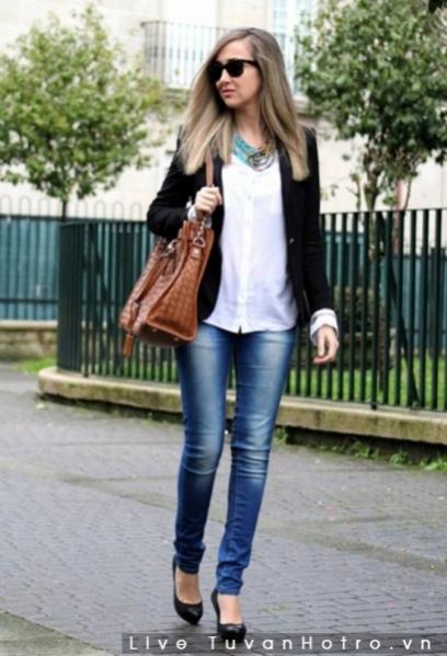 Hoặc bạn gái có thể khoác ngoài cùng blazer cho phong cách thanh lịch nhưng vẫn hết sức sành điệu khi đến công sở.