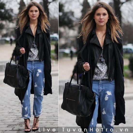 Jeans bụi phủi đẹp hoàn hảo hơn khi kết hợp cùng áo thun form rộng, có thể khoác ngoài với blazer, kết hợp phụ kiện tùy thích.