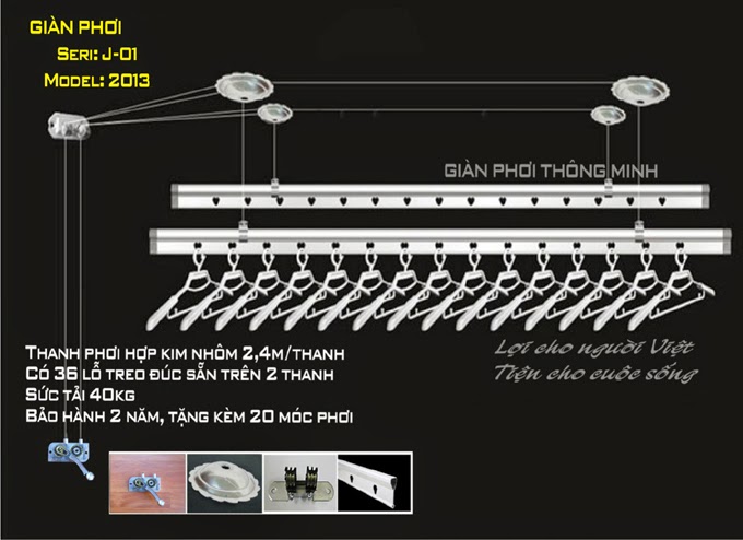 Giàn phơi được thiết kế , lắp đặt và sử dụng trong nhà nên nó dùng được rất lâu , điểm nổi bật nhất đó là nó không bị oxi hóa do thời tiết vì dùng hợp kim nhôm. Vì thế giàn phơi thông minh luôn giữ được màu sắc đẹp như mới. Với các đặc trưng nối bật cùng kiểu dáng đơn giản , nhỏ gọn không tốn diện tích đã và đang chiếm được dồi dào thiện cảm của các bà nội trợ khó tính.