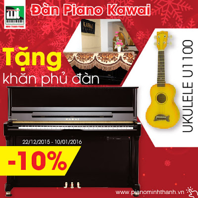 3. Đàn piano mới: Tất cả những model đàn piano thương hiệu Kawai danh tiếng tại Nhật Bản sẽ được ưu đãi trong sự kiện lần này. Ngoài mức giá rẻ cạnh tranh cho từng sản phẩm đàn piano này, bạn còn nhận được các quà tặng đi kèm đặc biệt như: 01 khăn phủ đàn piano cao cấp + 01 đàn Ukulele Chateau.