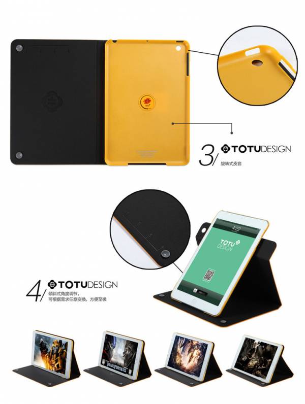 Cũng như các loại bao da khác, sản phẩm do Totu thiết kế có tác dụng bảo vệ chiếc iPad Air khỏi va đập, trầy xước, bụi bẩn và làm tăng tính thời trang cho máy. Điểm đặc biệt của bao da này là khả năng xoay của lớp nhựa bao bọc máy bên trong giúp chiếc iPad Air có thể dựng đứng, ngang, xoay 360 độ rất tiện lợi khi sử dụng