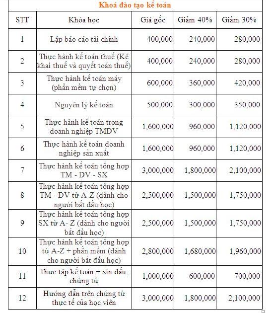* Miễn phí khoá học lập báo cáo tài chính (trị giá 400.000vnđ) khi học viên đăng ký các khóa học tổng hợp