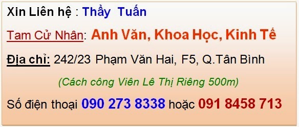 Thông Tin Liên Hệ Với Thầy Tuấn Hỏi Giờ Giấc Học Hành Mời Bạn Bấm Hình nhé. Cảm ơn Bạn