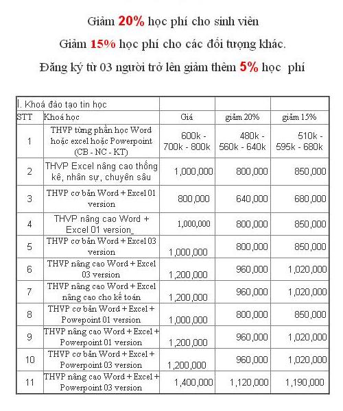 -- GIẢM 15% HỌC PHÍ CHO CÁC ĐỐI TƯỢNG KHÁC
