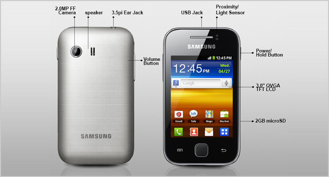 Samsung galaxy Y S5360 là dòng dien thoai gia si bình dân chạy hệ điều hành Android được Samsung công bố vào tháng 8 năm 2011. Với những ứng dụng thú vị, thiết kế gọn gang và khả năng tải dữ liệu cực, kết nối Wifi trên một giao diện gần gũi và dễ sử dụng, Galaxy Y giúp người dùng truy cập ứng dụng và duyệt web trên di động một cách nhanh chóng và dễ dàng.