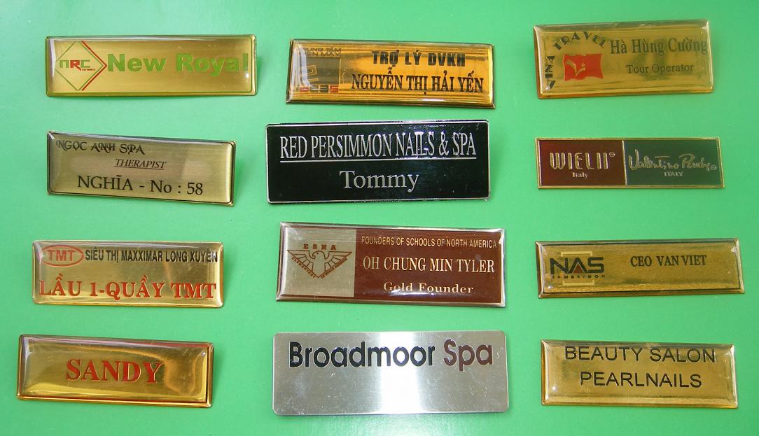 - Huy hiệu, bảng tên bằng đồng, xi vàng hoặc bạc với các công nghệ làm như sau:
